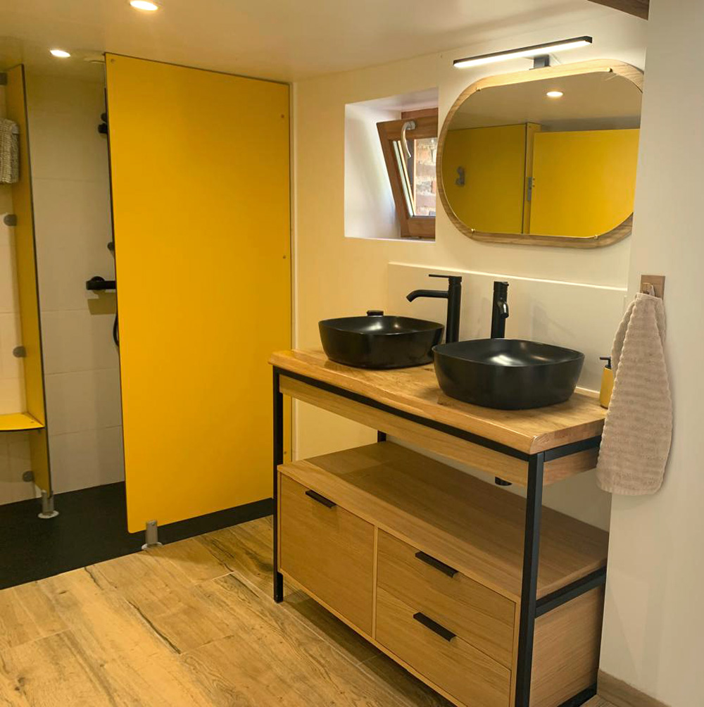 • Un local sanitaire, une cuisine équipée et un salon à votre disposition